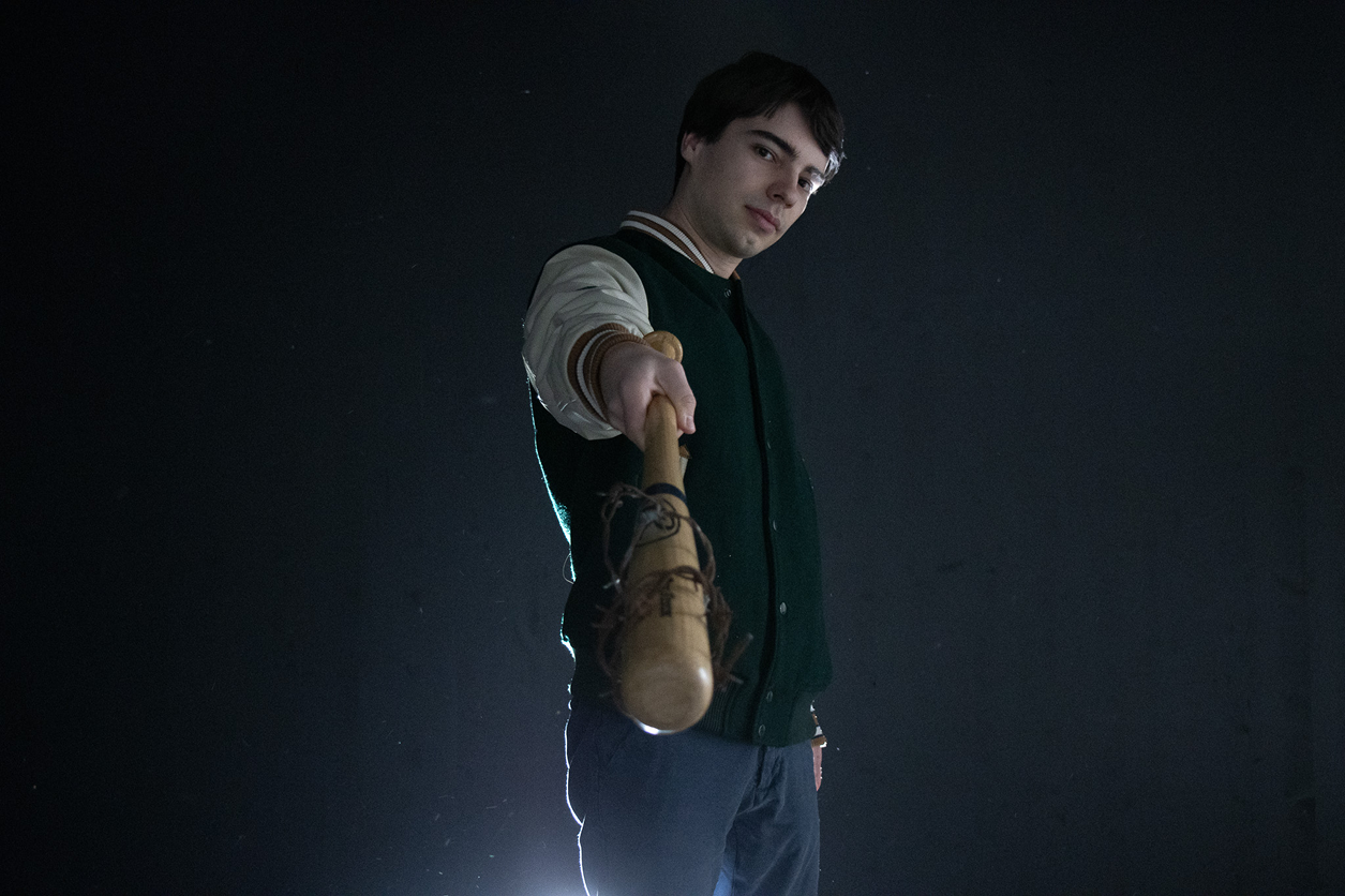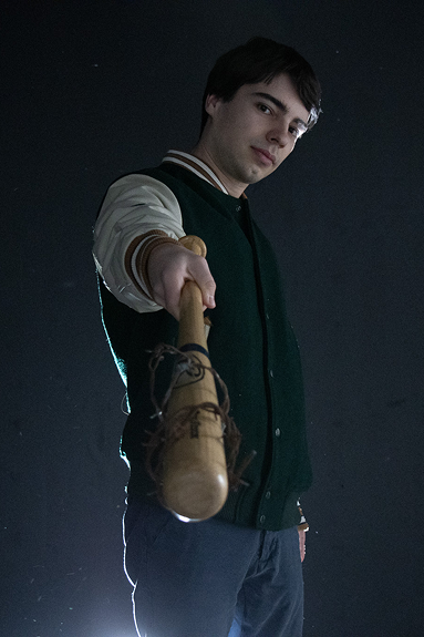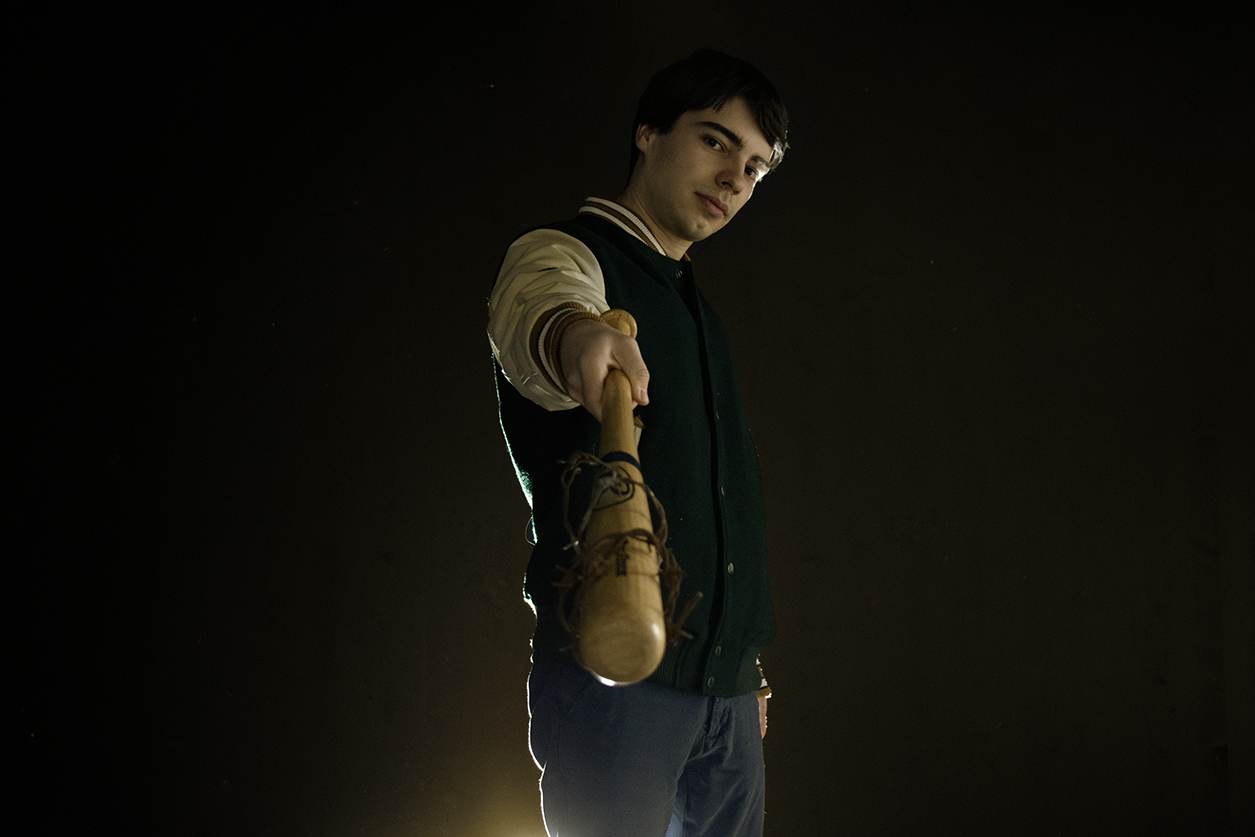 Inspiré d’une image de la série The Walking Dead, ce portrait explore le jeu de lumière en arrière-plan, évoquant les phares d’une voiture dans la nuit.