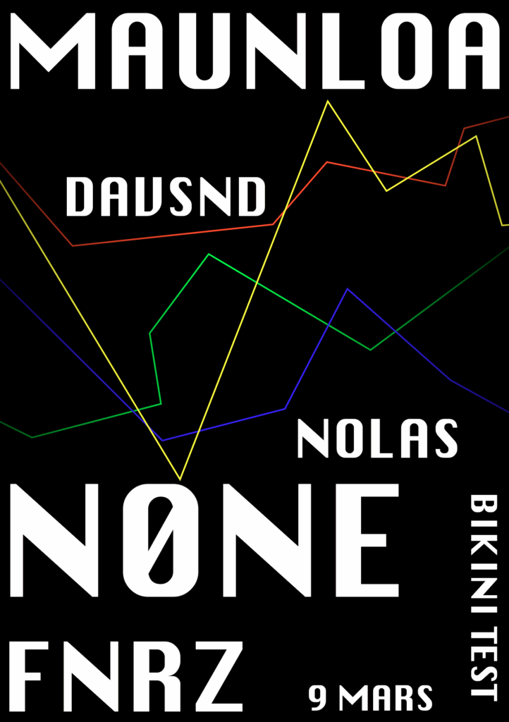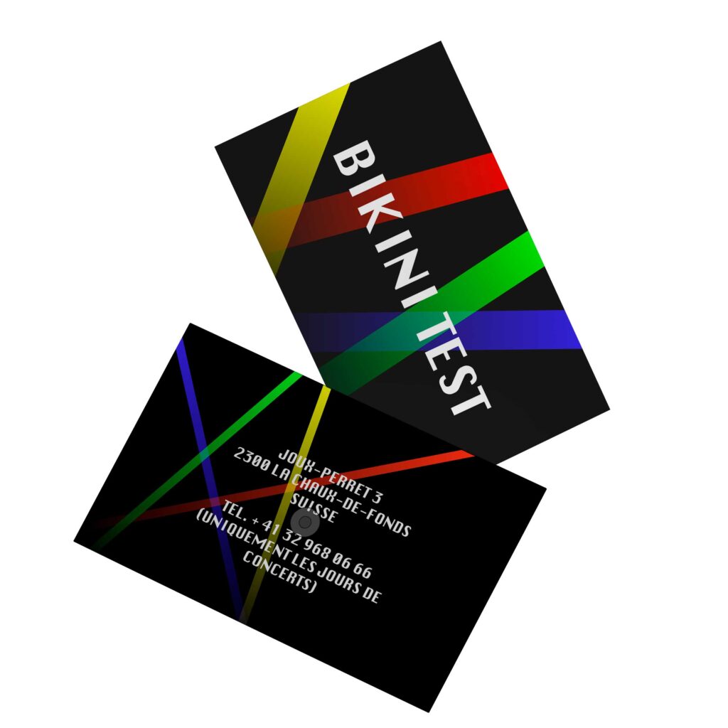 Pour ce projet, l’inspiration provient de l’univers d’un concert : la musique, les rassemblements de personnes et les décors, tels que les jeux de lumière, les lasers et la fumée. L’accent a été mis sur la manière de représenter la musique sous différentes formes, tout en conservant une idée cohérente. La musique est ainsi symbolisée par des projecteurs et des lasers dont les formes varient en fonction du type de musique proposé lors des soirées au Bikini Test. Les affiches possèdent chacune une identité propre liée au style musical des artistes, tout en conservant une cohérence avec l’identité générale du projet.